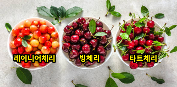 체리의 종류는 레이니어 체리, 빙(생)체리, 타트체리 등이 있습니다.